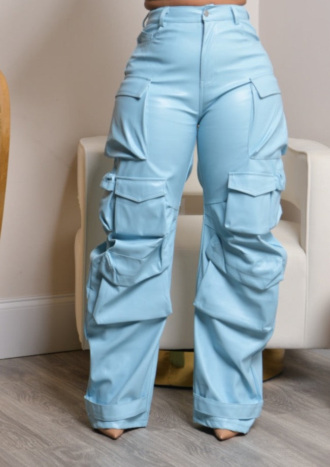 LUX FAUX LEATHER CARGO PANTS (Blue)