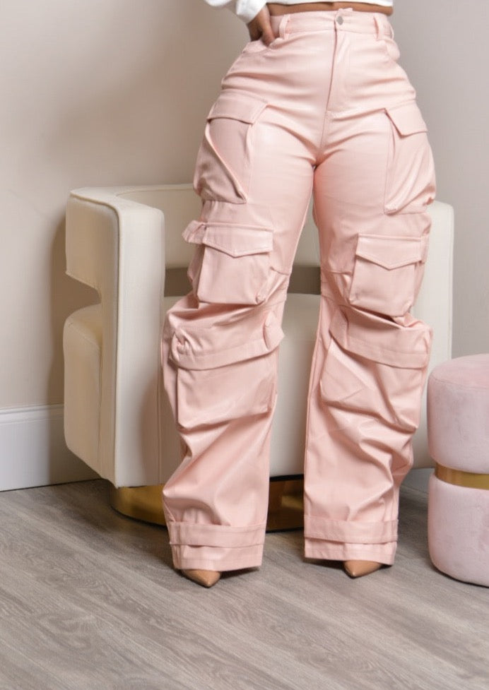 LUX FAUX LEATHER CARGO PANTS (Pink)