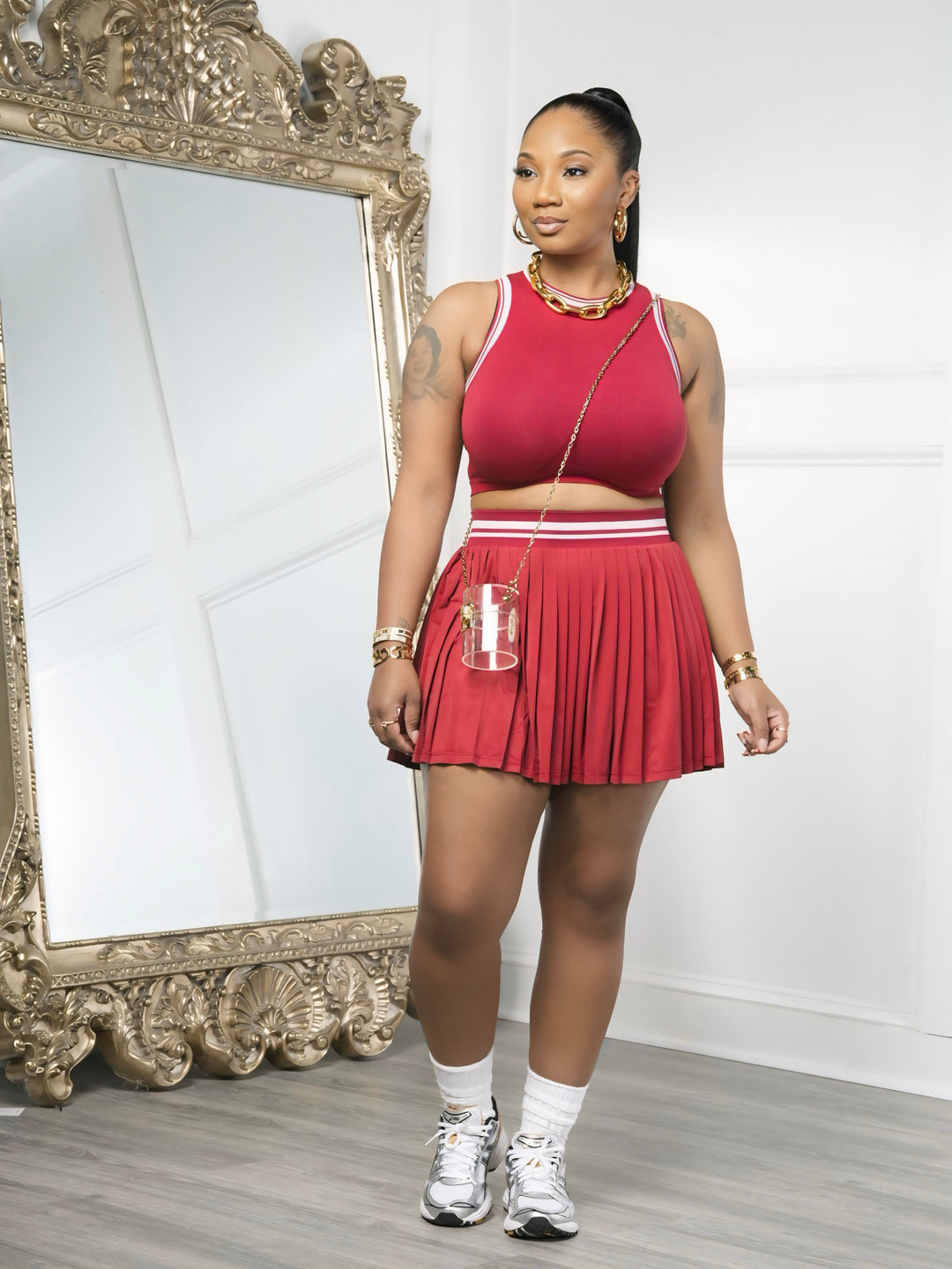 Poorlymade cheap and not as advertised I will not order from this, drop ship anymore the belt is i in A loop with the skirt and the top does NOT HAVE A TIE AS ADVERTISED LOOK IN THE PIC The top has No. type of tie/bow. Cannot be worn as advertised in pic. If u wanted to wear the top only u cannot it had mo clousure or connector for the tie piece