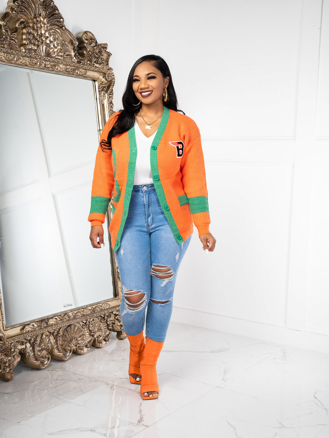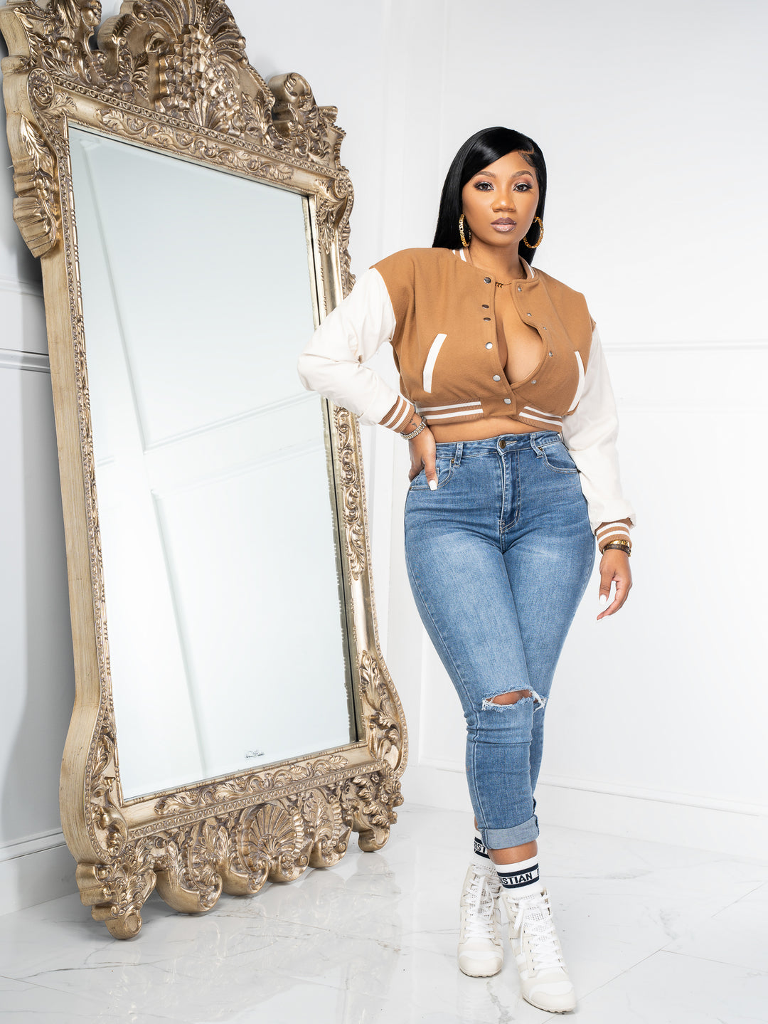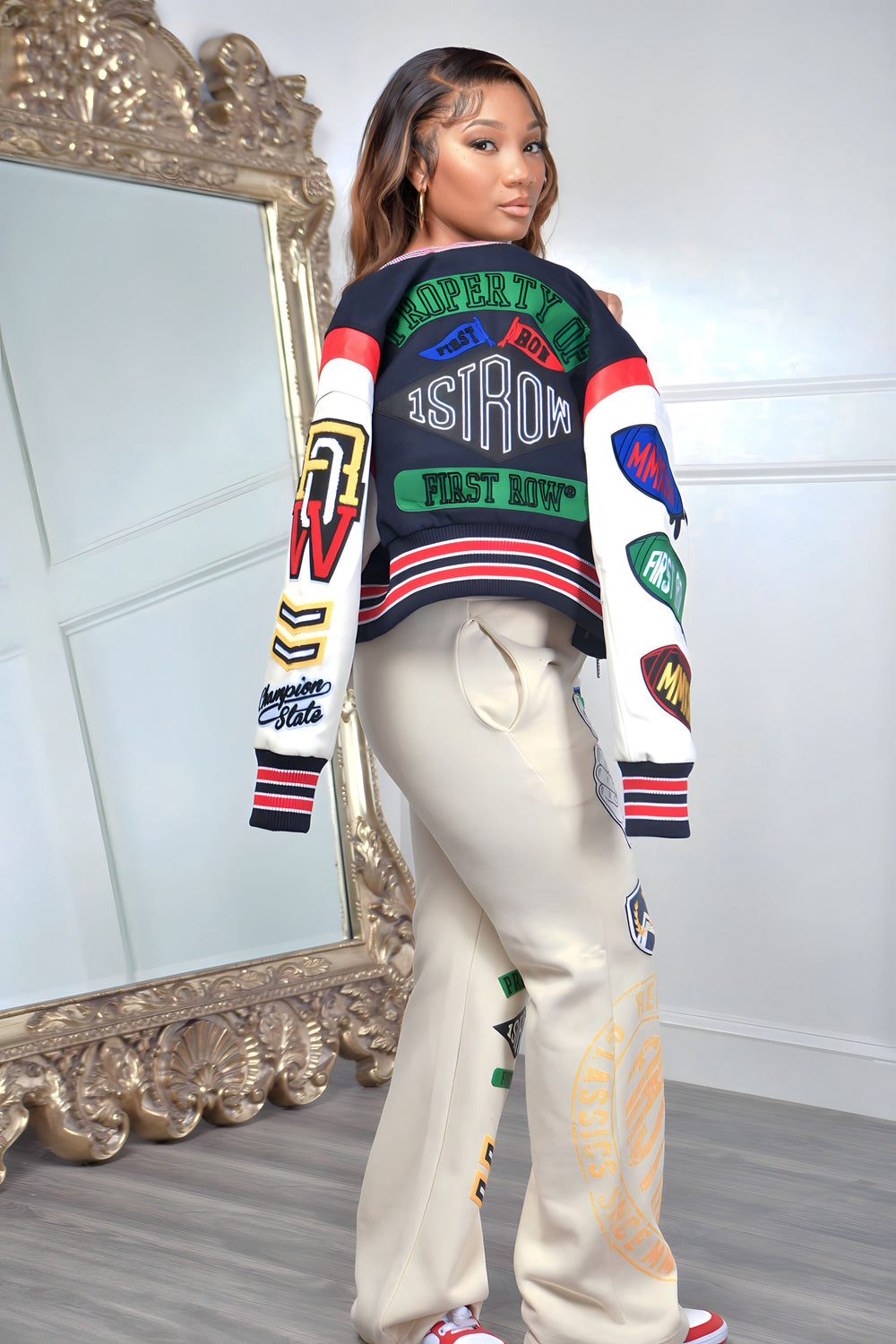 “B” LETTERED GAME DAY Crop JACKET (Ivory/Black)