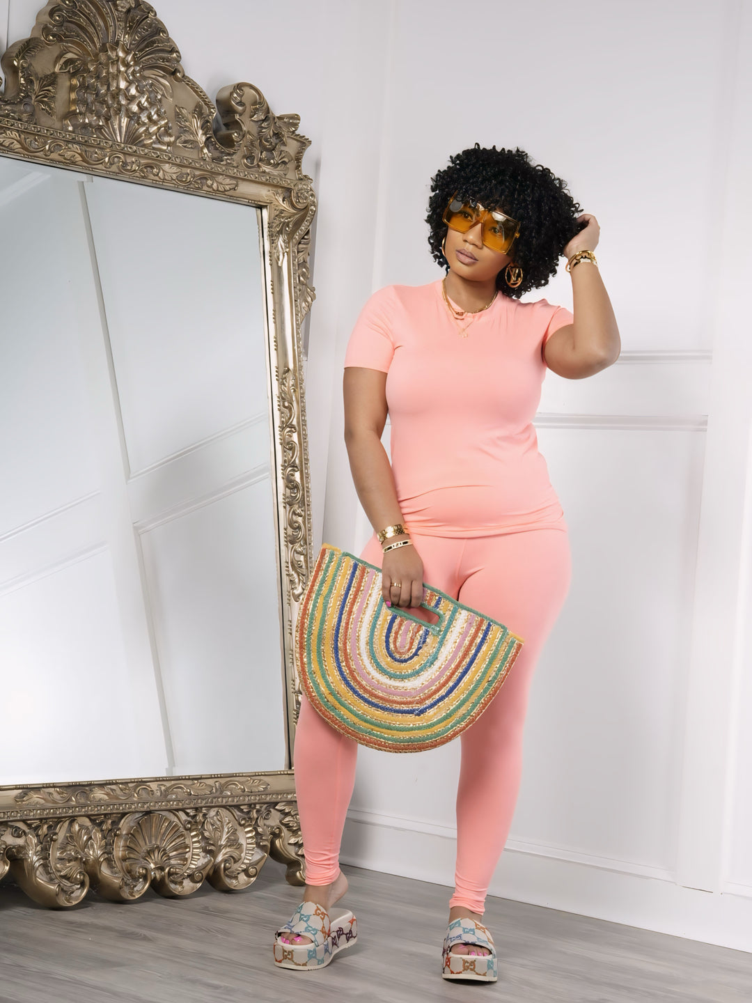 Basic Leggings Set in Coral