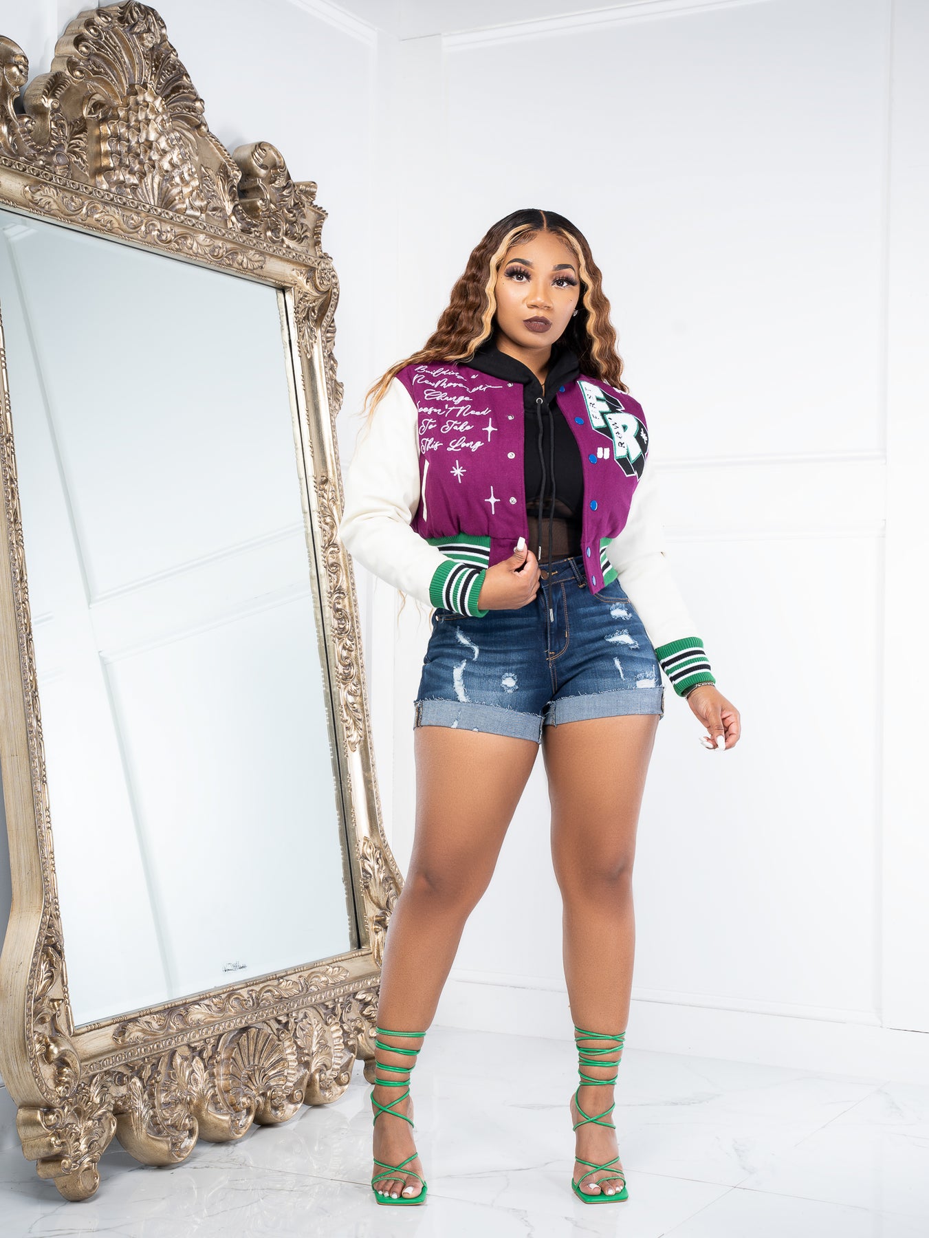Easy Livin Cropped VARSITY JACKET (PURPLE/GREEN)