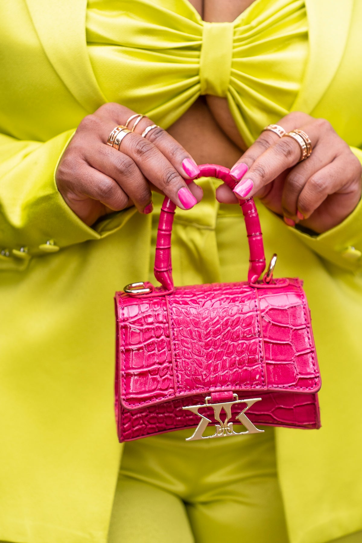 Wow! Say Hello to our very first Kleaux Exclusive mini crocodile handbag. Our mini bag can be worn as a clutch or crossbody. Perfect for any occasion, whether its date night or girls night out. The Kleaux Kutie Mini Handbag is an exquisite accessory featuring the original KLEAUX KOUTURE SIGNATURE LOGO dipped in Gold.
