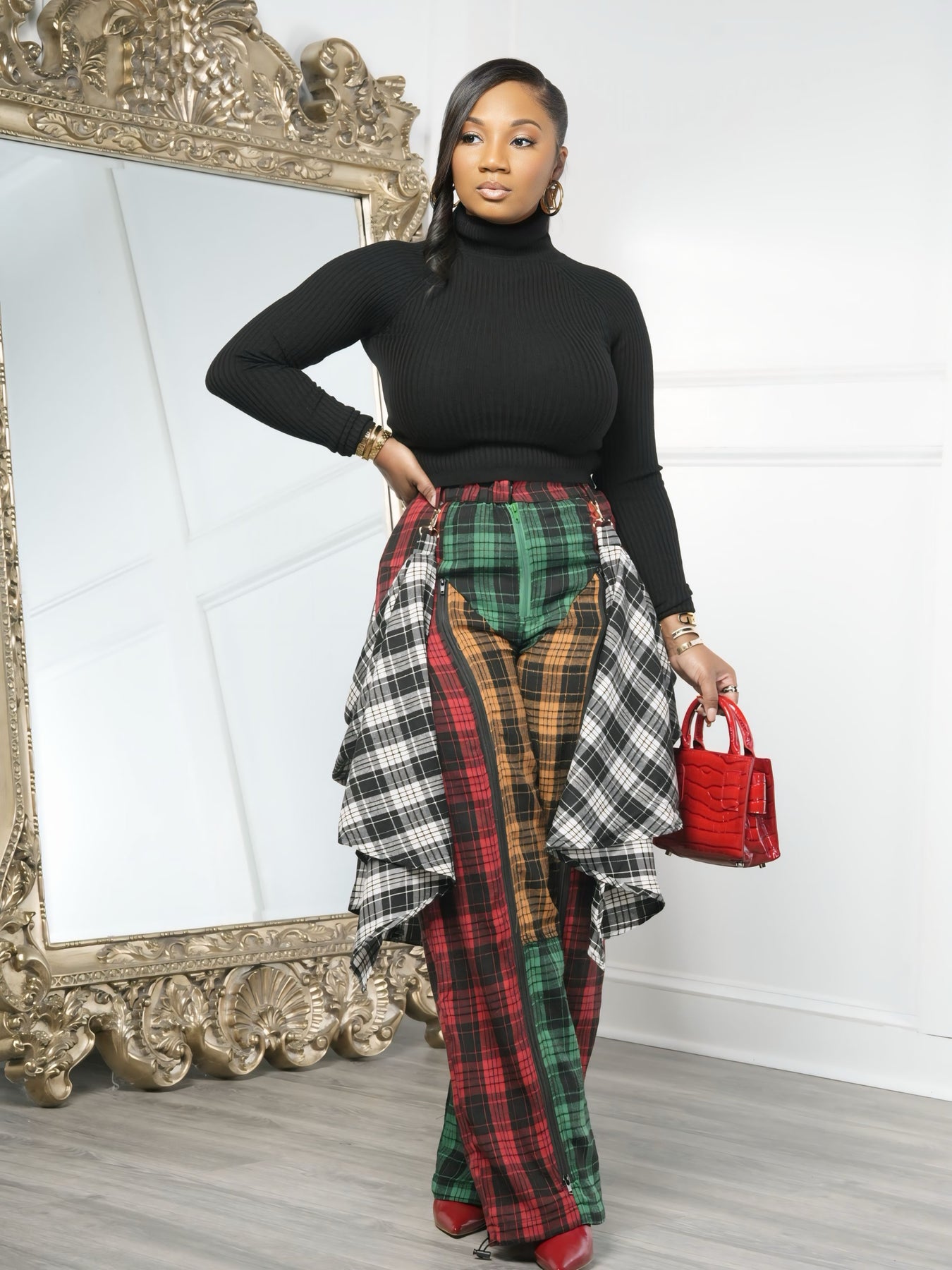 Make a statement that refuses to blend in. The Rebel Layers Pants fuse bold plaid patchwork with dramatic layered detailing for a fearless, street-luxury vibe. Designed for the woman who owns her confidence, these pants bring attitude and art together in one unforgettable look. Pair them with a sleek black top or a cropped varsity jacket for a head-turning fit that says main character energy only.