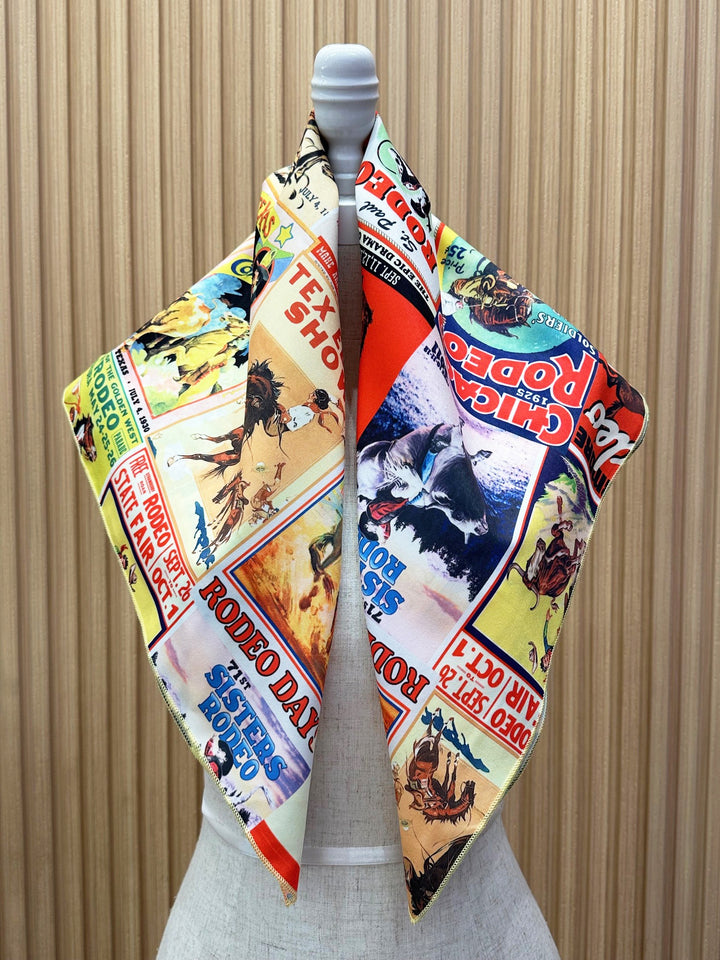 Western Cowboy Assorted Print -Scarf -Can Be Used For Top -Size: 28x28" -All Season Accessories -Good To Gift