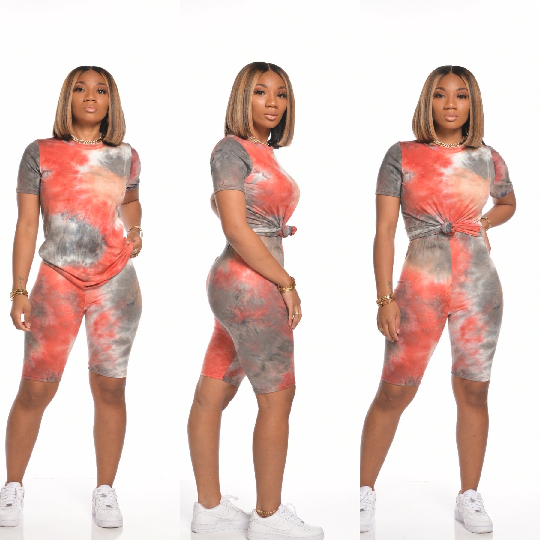 TIE DYE ROUND NECK SHORT SLEEVE/SHORTS 2PC SET